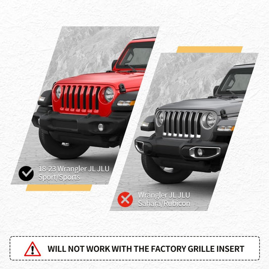 Grille Inserts Headlight Covers Set Fits for Jeep (2018-2023) Wrangler JL JLU(Sport/Sport S)