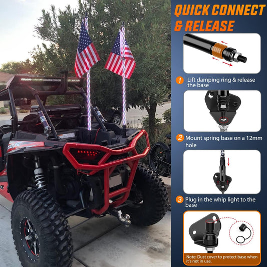 2PCS 3FT Spiral RGB Led Whip Light w/RGB Chasing Light RF Remote Control