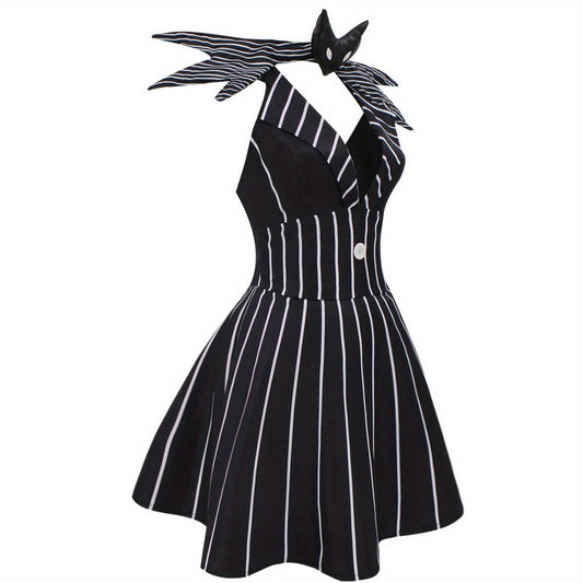 Women's Gothic Striped Halloween Costume Dress | Mini