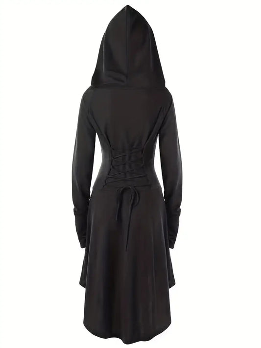 Women’s Gothic Lace Up Halloween Movie Costume Dress | Hooded Long Sleeve