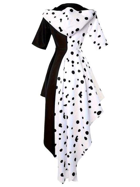 Women’s Hooded Halloween Movie Costume Dress | Asymmetrical Dalmatian