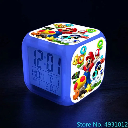 Anime Sonic & Mario Bros Figure Model LED Alarm Clock: 7-Color Touch Light Desk Watch