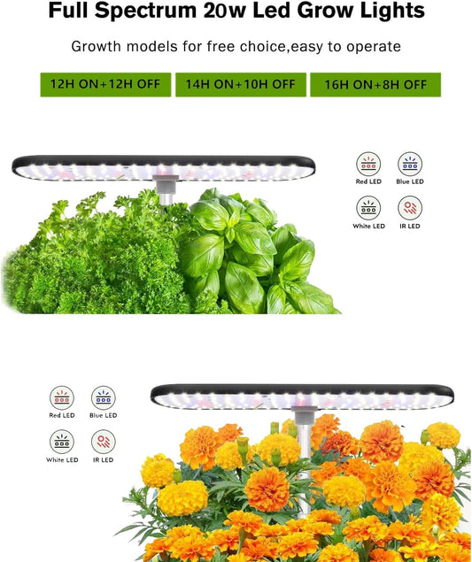 12 Pods Hydroponics Growing System Kit, Adjustable Height, Quiet Smart Pump