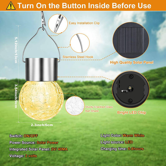 Solar Outdoor Hanging Lights - 12Pcs Solar Powered Glass Ball Lights Waterproof For Tree