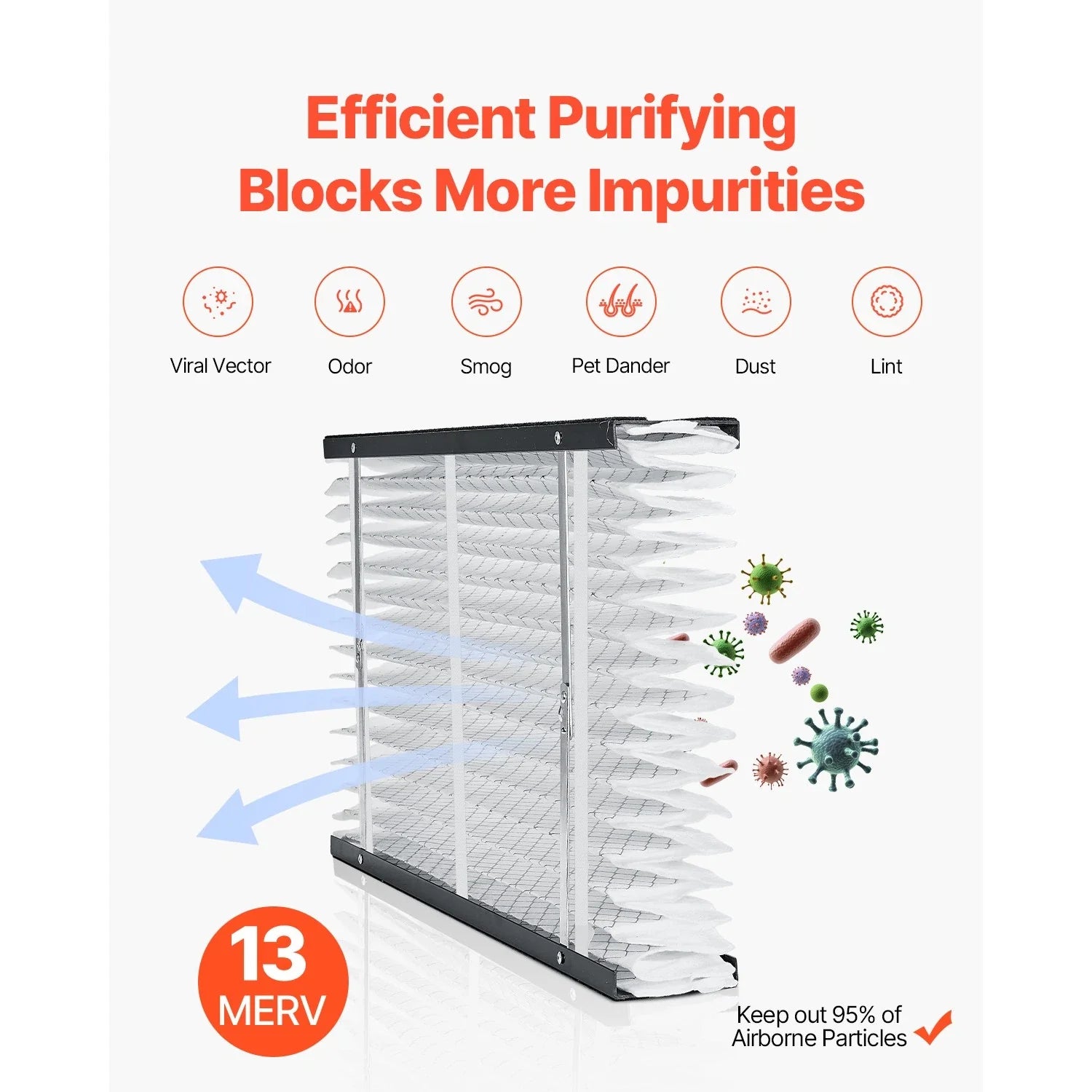 • Filtration Rating: MERV 13, which captures finer airborne particles—commonly including allergens, smoke, bacteria, and some viruses.