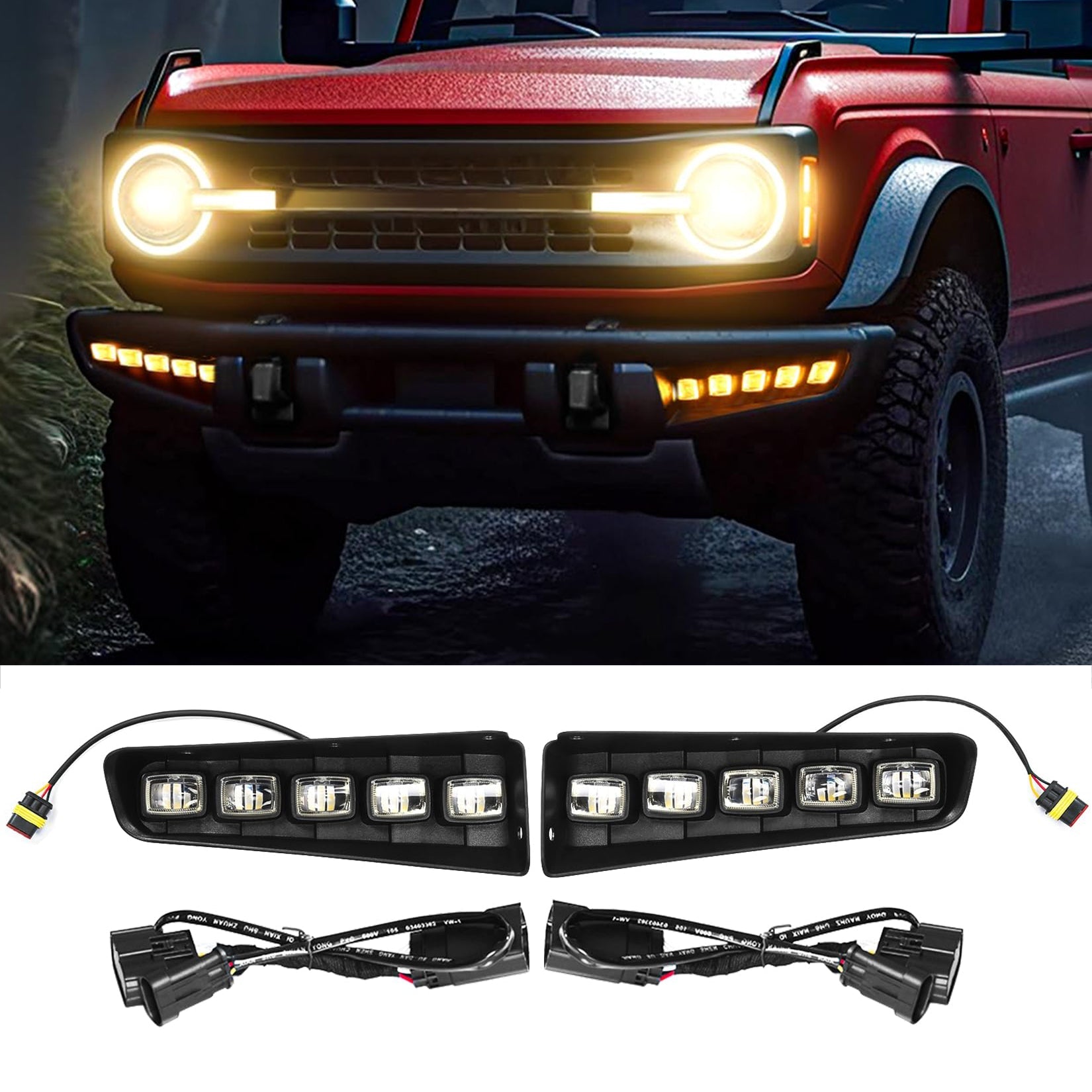 • Enhanced Visibility: Upgrade your Ford Bronco with our high-performance LED fog lights. Improve visibility during foggy,low-light,heavy rain,snow,and other adverse weather conditions for a safer driving experience