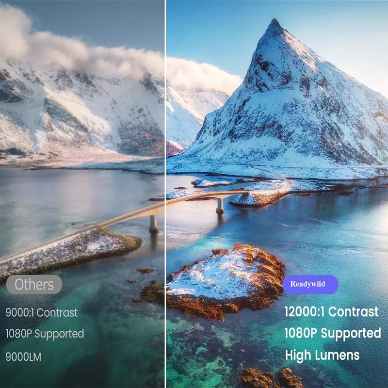 【Short Throw, Giant 300" Display & 100%-50% Zoom】Enjoy a 300" screen from a shorter distance—great for tight spaces or outdoor movie nights. The readywild short throw projector with 100%–50% zoom, adjust screen size with one click, no need to move the projectors. A flexible, fun gift for families and kids.