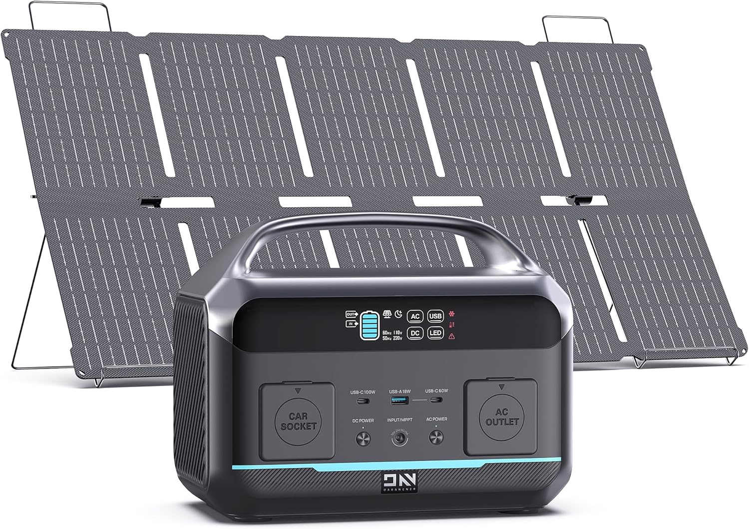 • Three Charging Methods: Supports solar, car, and wall outlet charging, keeping devices powered anywhere. Equipped with 100W solar panel and charging cable, perfect for outdoor adventures.