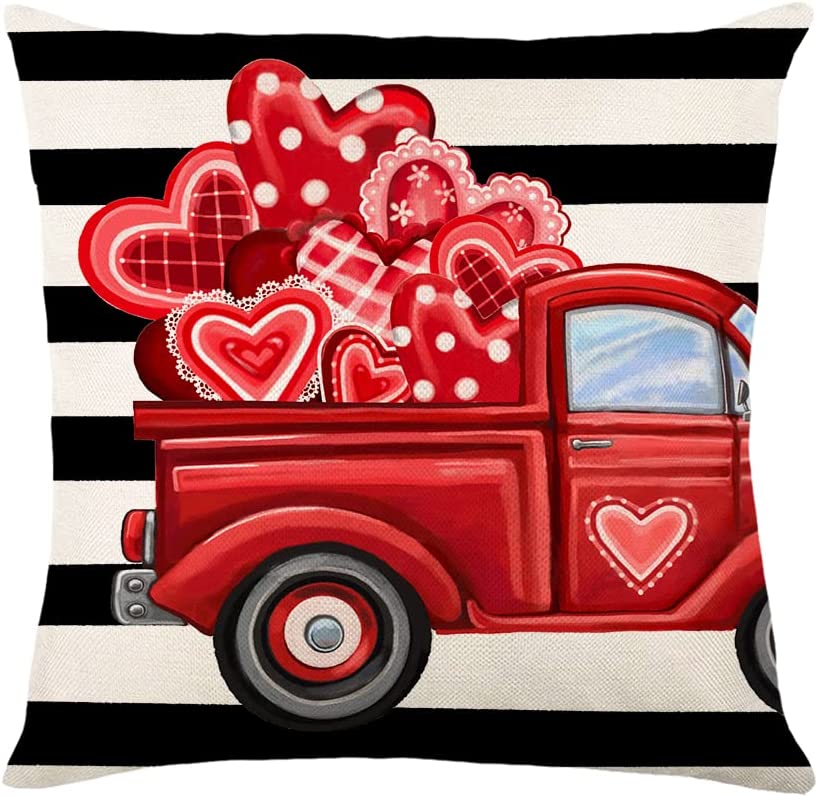 • REFRESH YOUR HOME: The room takes on a fresh look by changing out the 18x18 pillow cover for Valentine's day for various holidays without spending a lot of money. Classic black stripe, red heart, red truck, and hello valentine, forever love letter, brighten your home and create Valentine's day holiday atmosphere.